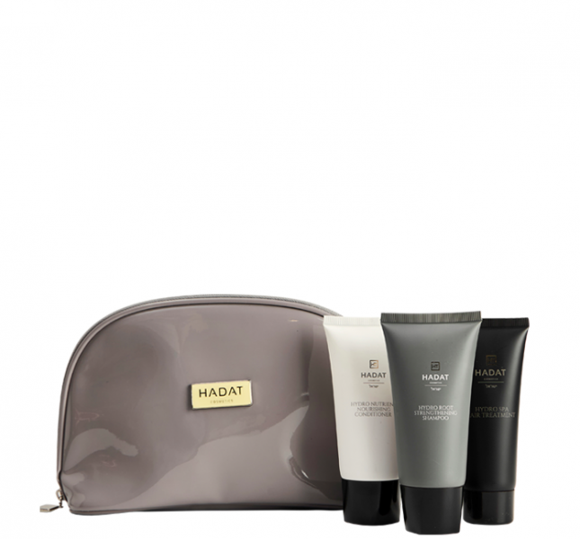 The “Hydro Hair Growth Set” from Hadat Cosmetics combines three products designed to strengthen your hair. All products are conveniently packaged in a stylish cosmetic bag for easy storage and transport. With this set, you can take comprehensive care of your hair, stimulate hair growth, refresh the scalp, restore shine and strengthen the roots.